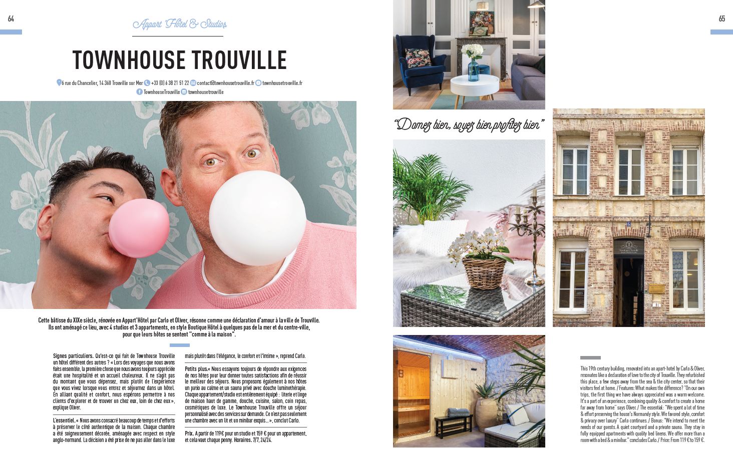 Nous imaginons un monde dans lequel les voyageurs n’ont plus à choisir entre liberté et service, entre authenticité et confort. Un monde où les petits hébergements indépendants sont la norme en matière d’accueil, de propreté et de solidarité. Un monde où chaque client repart non seulement satisfait, mais aussi transformé – emportant avec lui un morceau de Normandie (et de Townhouse Trouville) pour toujours.